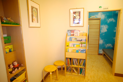 エントランス 子どもコーナー 待合室 中待合室 診察室 レントゲン室 第2診察室 トイレ 隔離室